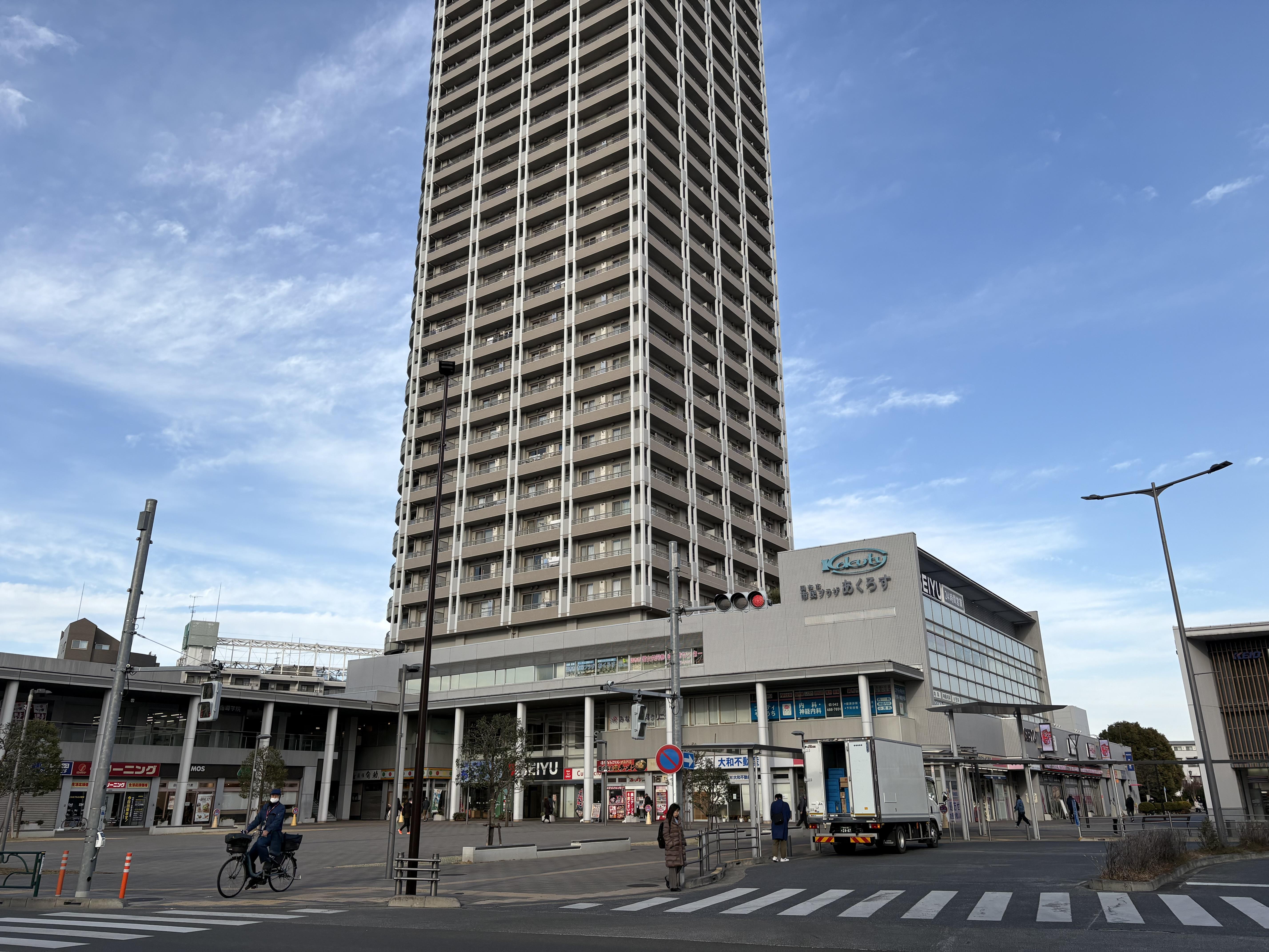 改札口を出て、右に数十m歩くと高層ビルの建物(コクティー)がみえます。